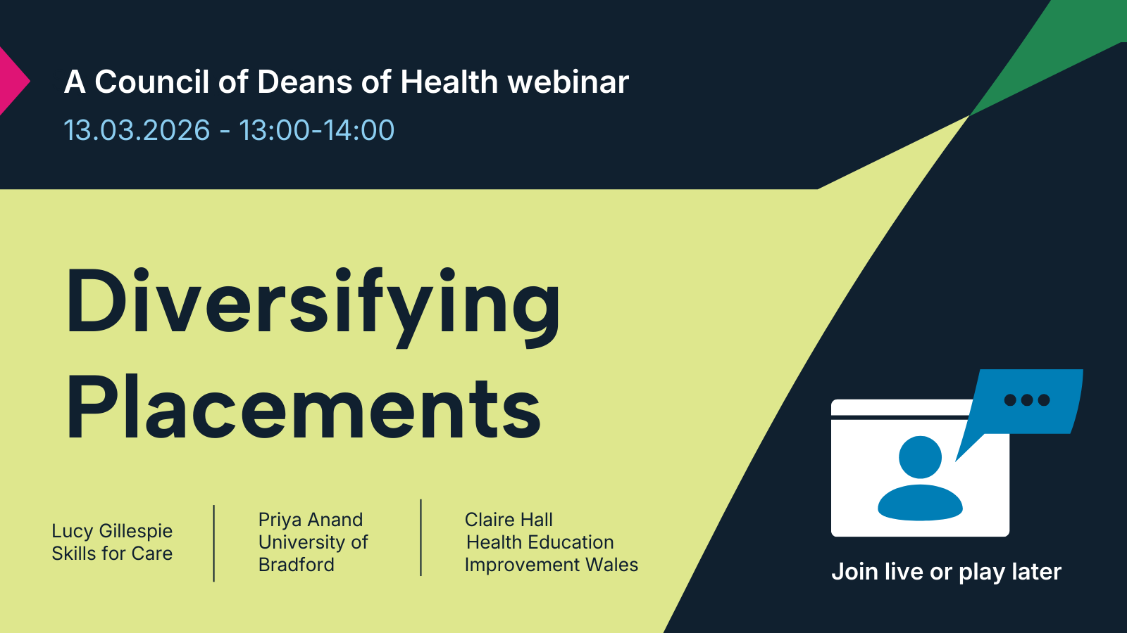 The Council of Deans of Health represents the UK’s strategic academic leaders in healthcare education and research. Our membership comprises over 100 university and further education faculties across the UK working together to strategically improve healthcare education, research and public health.