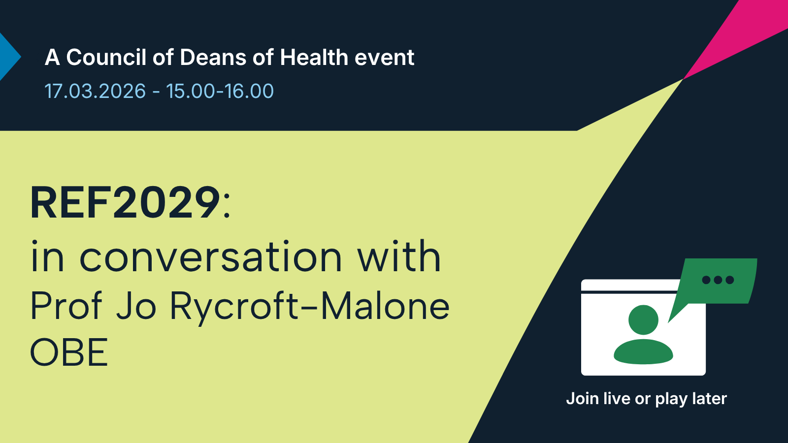 Missed one of our online events? Watch it again in our online library. The Council of Deans of Health offers a diverse and high-quality array of online and in-person events that are essential for networking and advancing professional development.